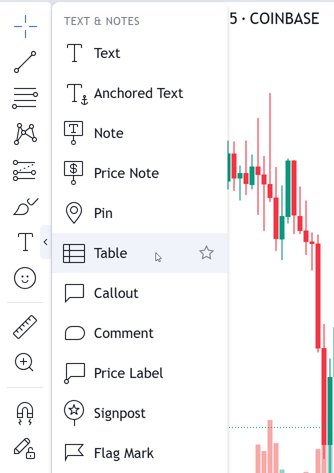 برای کمک به اینکه تحلیل تو راحتتر و ساختارمندتر شود، ما ابزار رسم جدید Table (جدول) را معرفی کردهایم. این ابزار به تو اجازه میدهد متریکهای کلیدی و یادداشتها را سریع و مؤثر در یک لیست منظم نمایش دهی تا بتوانی اطلاعاتت را بهسادگی ساختاربندی کنی.